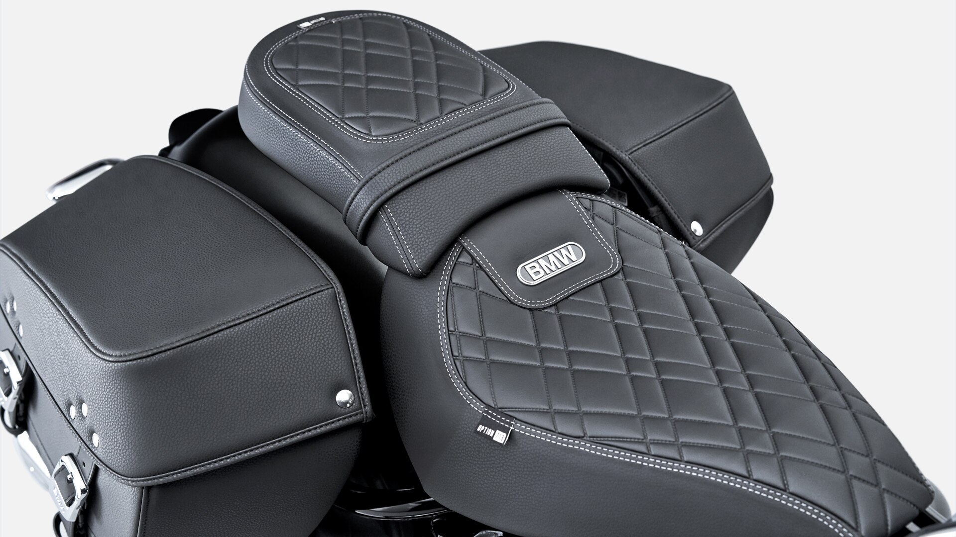 Notre Option 719 vous offre une foule de possibilités pour personnaliser votre moto. Avec le pack design AERO Option 719 composé de pièces en aluminium luxueusement brossé et anodisé incolore, parez votre véhicule d’une note d’élégance. Les jantes moulées AERO Option 719 en Contrast Cut argenté s’intègrent parfaitement au look. Et la selle Option 719 en similicuir grainé avec plaquette BMW brodée rend votre trajet et celui de votre passager particulièrement confortable.