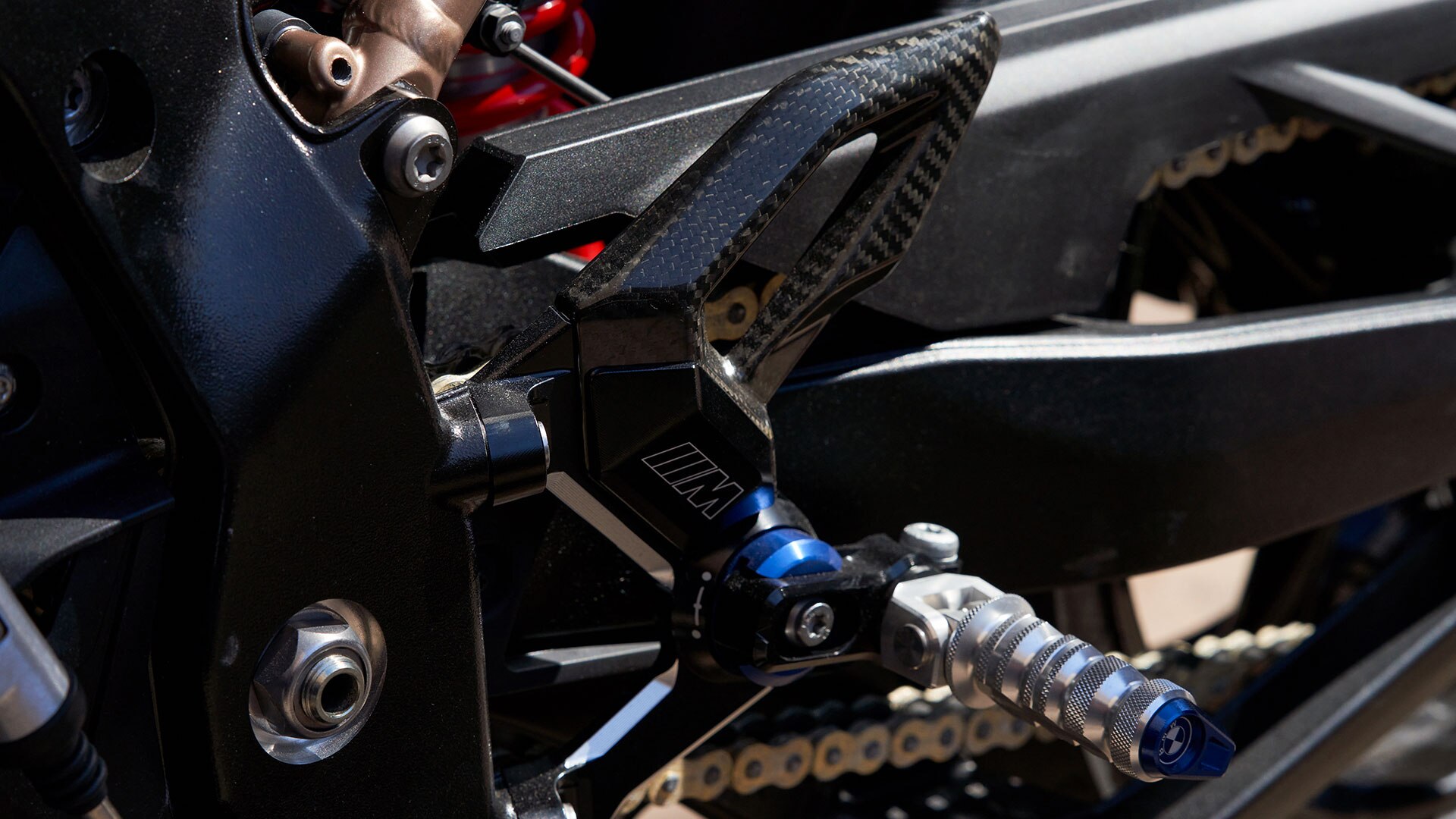 Son poids ? Il a été réduit au maximum. Au-delà d'une certaine puissance, ce ne sont plus seulement les chevaux qui comptent, mais également les grammes gagnés. Avec le pack M, la recherche d'allègement va encore plus loin. La moto ne dépasse pas 200 kg, même entièrement équipée et tous pleins faits.