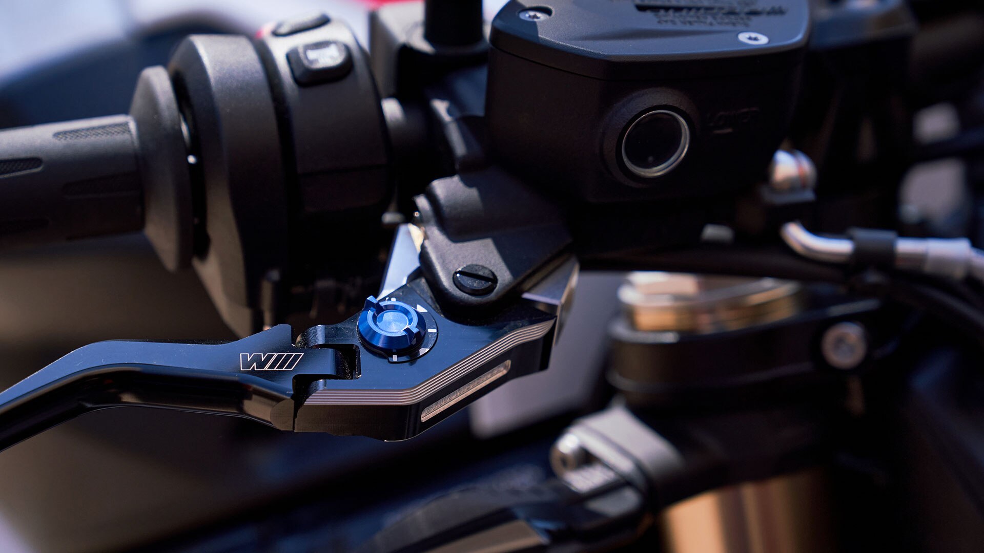 La position assise ? Elle est en mode offensif mais toujours sous contrôle. Grâce à l'angle d'inclinaison revu, au guidon réglable et aux trois hauteurs de selle différentes. Une moto stable et précise, pour délivrer un maximum de plaisir.