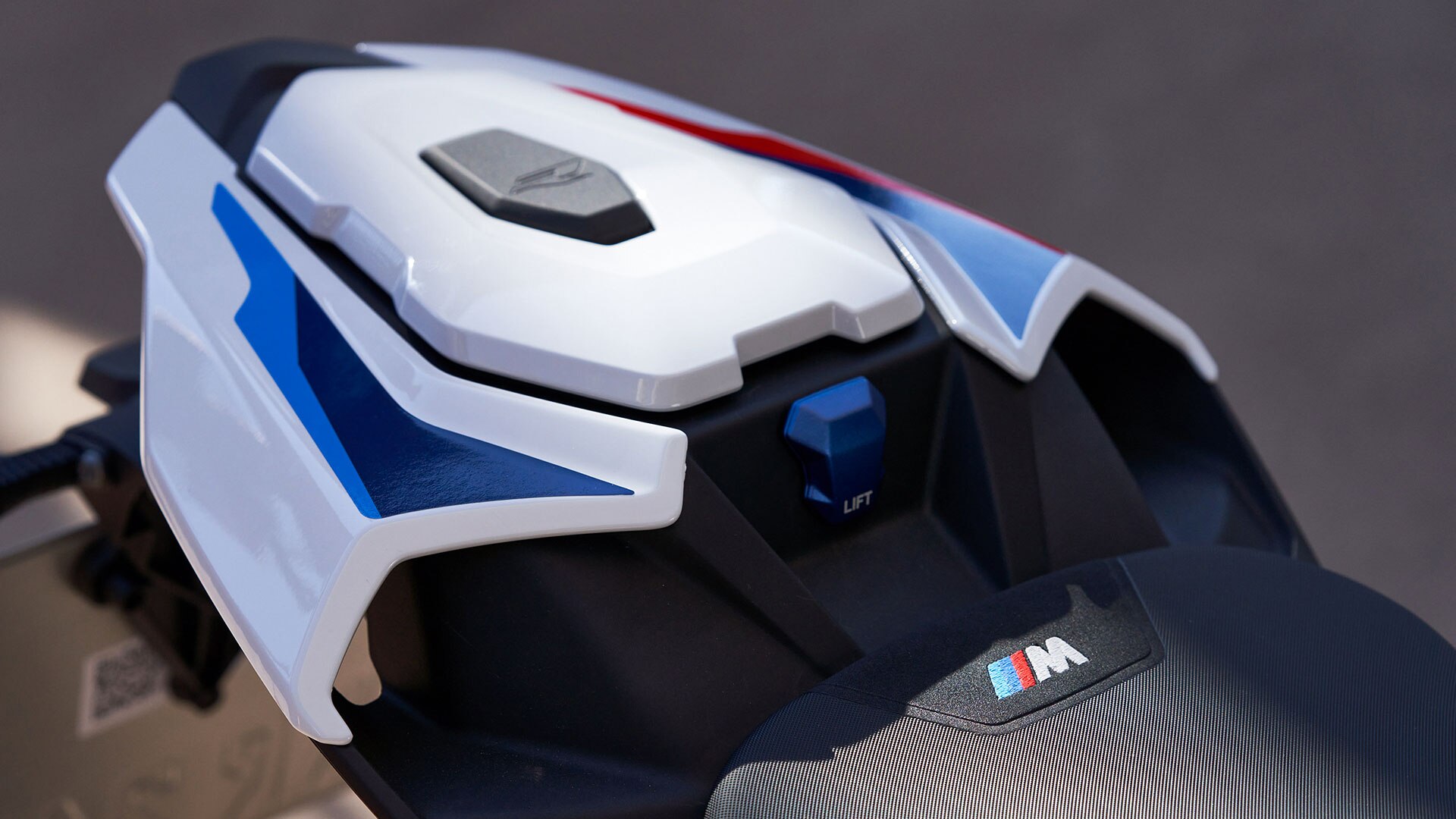 Une lettre qui exerce une réelle fascination, qui associe sport automobile, puissance et enthousiasme. Elle place tout de suite la S 1000 R, dans ce qui est son terrain de jeu, le sport mécanique. Les jantes forgées M ou les roues en carbone M, la batterie M Lightweight et la chaîne M Endurance affichent clairement son appartenance au monde de la course.